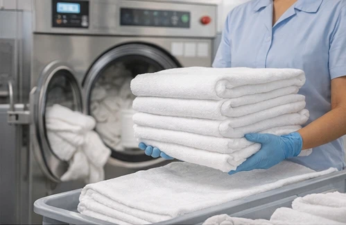 Although outsourcing towel laundry might seem like an added expense at first glance, the long-term financial benefits can be significant. Running your own laundry operation requires investment in commercial washers and dryers, ongoing maintenance, utility costs (water, electricity), detergent purchases, and staffing. A professional laundry partner absorbs those costs and operates at scale allowing you to enjoy predictable pricing, eliminate the need for costly equipment, and benefit from the latest laundry technology without capital expenditure. Moreover, proper cleaning methods help extend the lifespan of your towels, reducing the frequency of replacements.